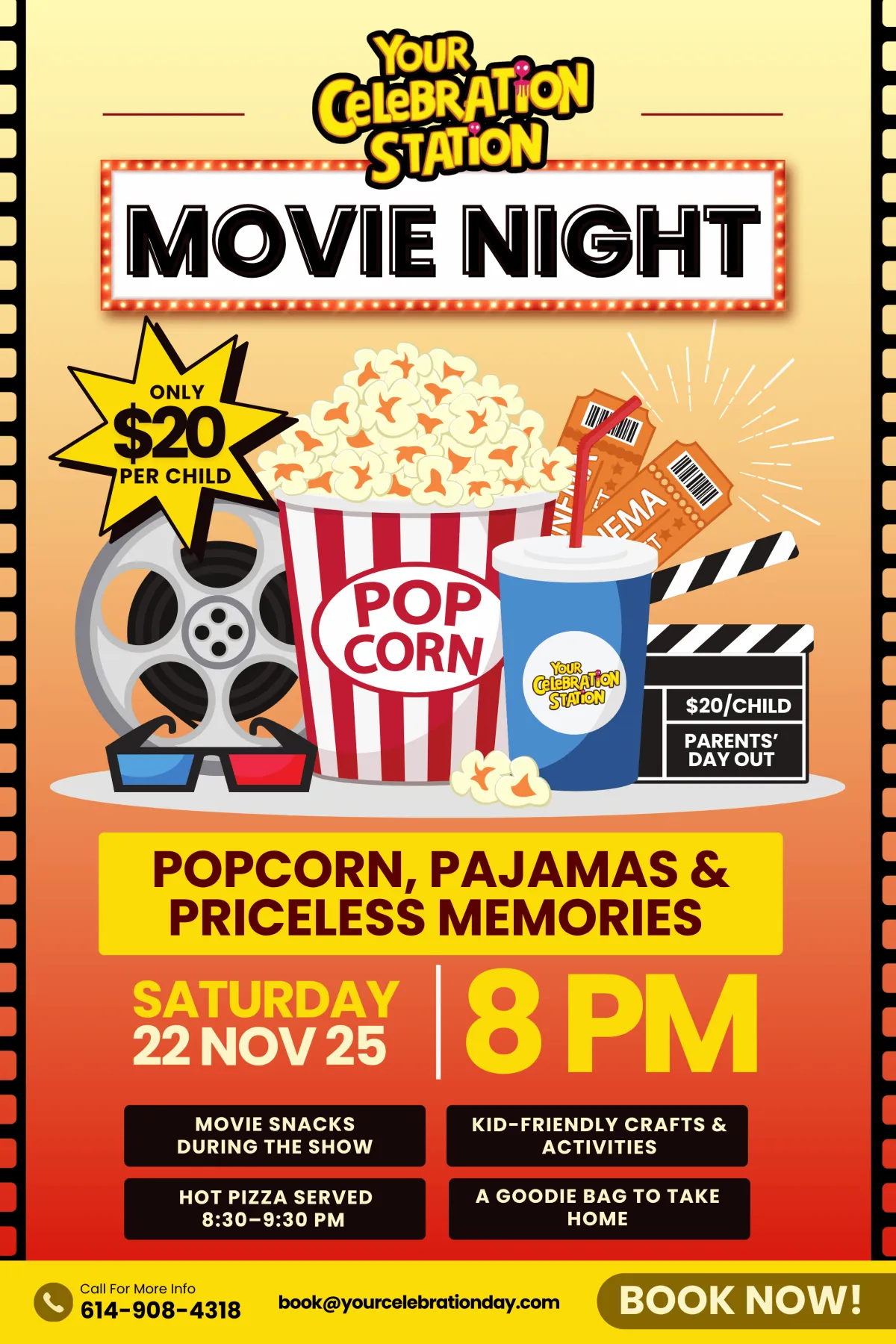 Forget the messy living room and spilled popcorn. At Your Celebration Station (YCS) in Canal Winchester, we transform a simple movie night into a creative celebration. Kids arrive in pajamas, step onto the red carpet, craft their own snack trays, and dive into hands-on fun before, during, and after the show. It’s cinema magic without the stress—and every child feels like a star.